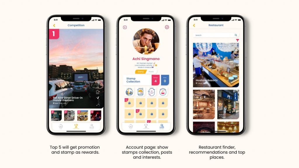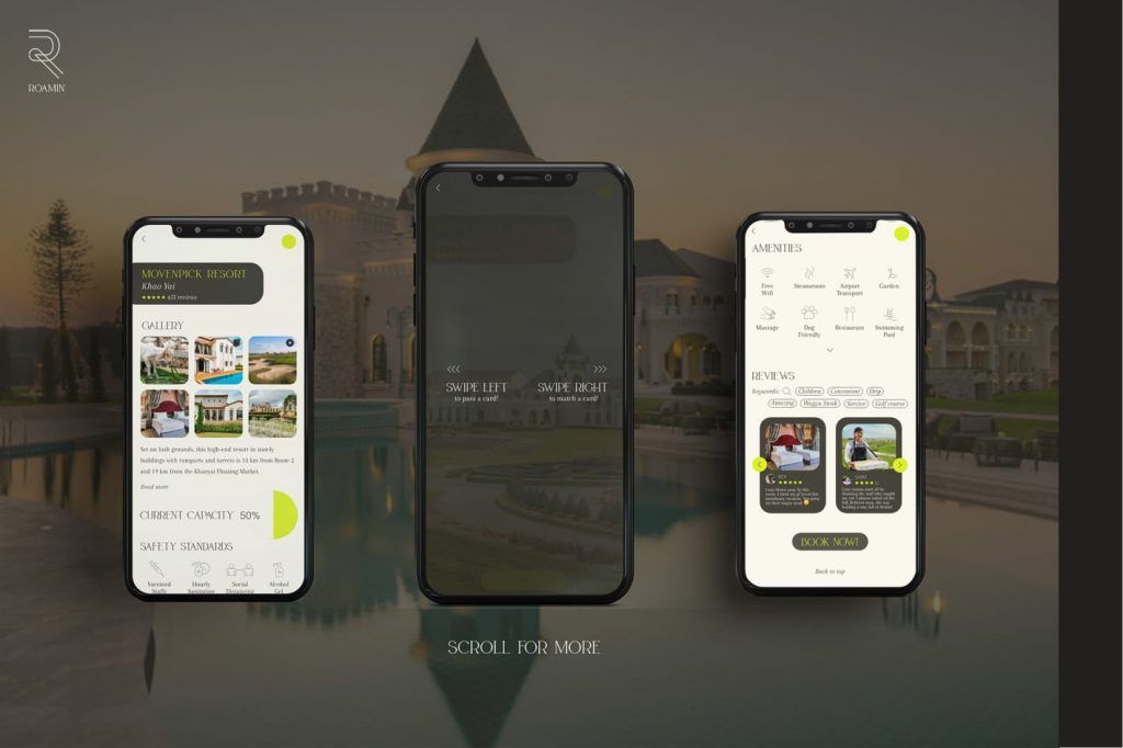 Roamin’ is a unique post-Covid travel application tailored to Generation Z. It is inspired by Tinder where businesses and customers can perfectly find each other based on their health log and travel preferences in real-time. Both ends benefit from the filtering process and are encouraged to practice better safety standards to access more places and gain more customers. Roamin’ is a helpful bestie with a super fresh and playful personality that will enhance Zoomers’ intuitive navigation through the application.