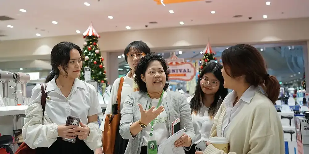 After the insightful discussion with Khun Tanayos, participants were given a guided tour of Central Rama 9, where they observed how different floors were designed to create unique shopping experiences. Additionally, the guides shared an insight into how Central rewards high-spending customers with exclusive benefits. During the Q&A session at the end, participants had the opportunity to inquire about the company’s future. Central Group emphasized its focus on maintaining its leadership in retail and hospitality within Thailand, while exploring opportunities for global growth.