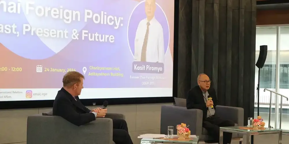 The International Relations and Global Affairs (IRGA) program of Mahidol University International College (MUIC) held a special talk on “Thai Foreign Policy: Past, Present and Future” featuring former Foreign Minister Kasit Piromya.