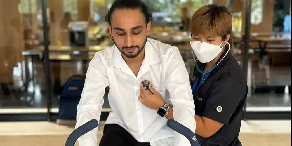 On May 20, 2024, from 10:00 am to 4:00 pm at the Ground Floor Lobby of Aditayathorn Building, a team from Siriraj Hospital conducted physical fitness tests for the 102 participating students, including endurance and oxygen testing stations.