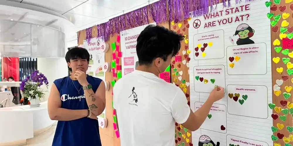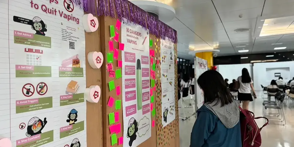 A bulletin was also posted to raise awareness among students on the health hazards of cigarettes and e-cigarettes especially with the alarming increase in popularity of e-cigarettes in Thailand.