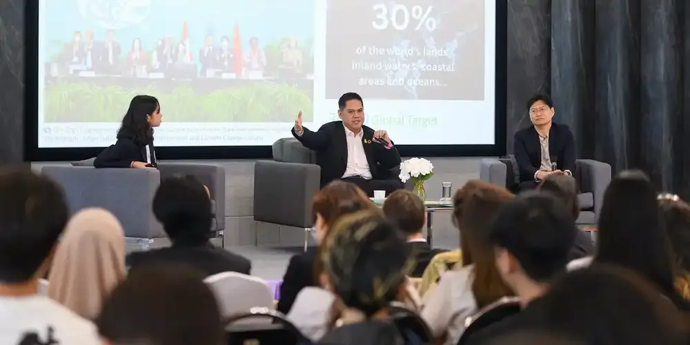 The discussion started off with identifying the biggest environmental issues in Thailand. Minister Varawut said El Nino and La Nina top his list due to the damage caused by drought and floods not only on the daily lives of people but also to the economy. This is followed by PM 2.5 and loss of biodiversity.