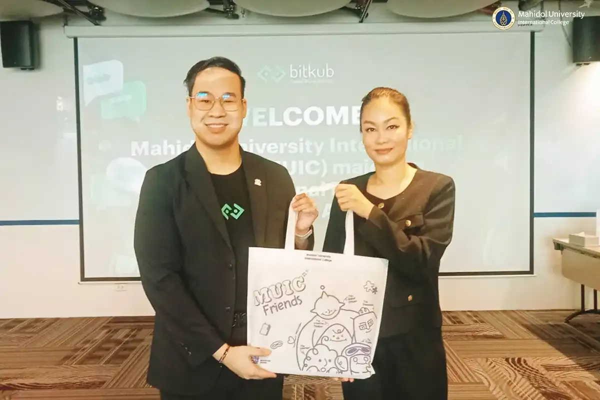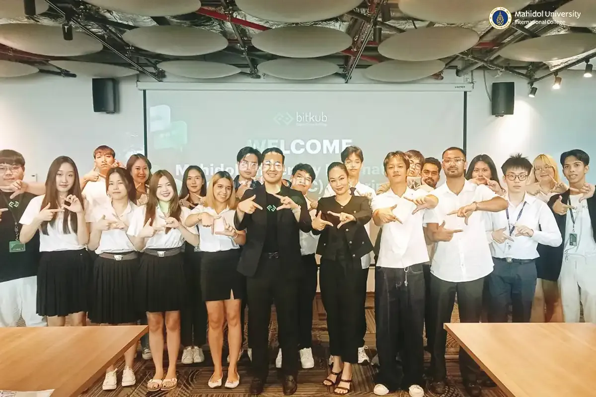 Fifteen students from Mahidol University International College’s (MUIC) International Relations and Global Affairs (IRGA) program, led by Ajarn Pattaka Sa-ngimnet, visited Bitkub, a leading digital asset company in Thailand, to explore potential internship and career opportunities and gain insights into the company’s structure, development, and future goals.