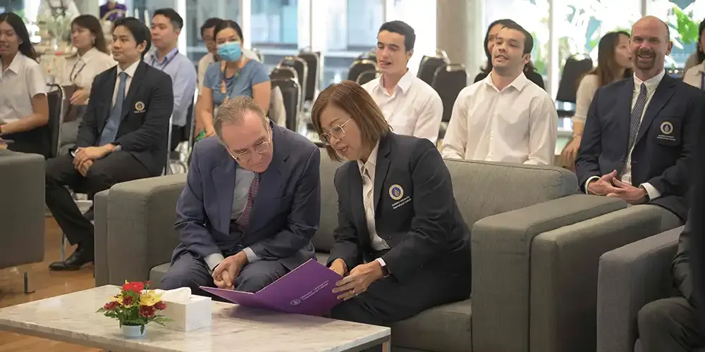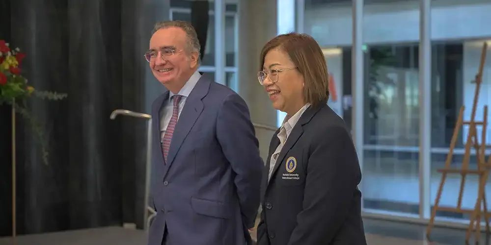 Prof. Chulathida Chomchai, M.D., MUIC Dean, signed the MOU on behalf of the college while H.E. Mr. Felipe de la Morena Casado, Spanish Ambassador to Thailand, signed on behalf of the Spanish Agency for International Cooperation and Development (AECID) on February 23, 2024 at Charinyarasami Hall in Aditayathorn Building.