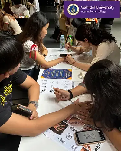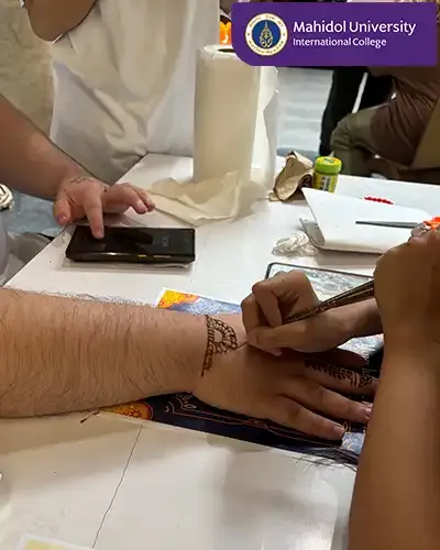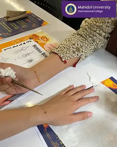 This year, the International Student Club (ISC) of Mahidol University International College (MUIC) celebrated Diwali through various walk-in workshops for students to enjoy. The workshops featured a variety of engaging activities, including henna painting, where participants received beautifully intricate traditional designs; ‘diya’-making, allowing students to mold their own vibrant clay candle holders; and ‘rangoli’-crafting, where shredded paper was used to create elaborate and colorful patterns.