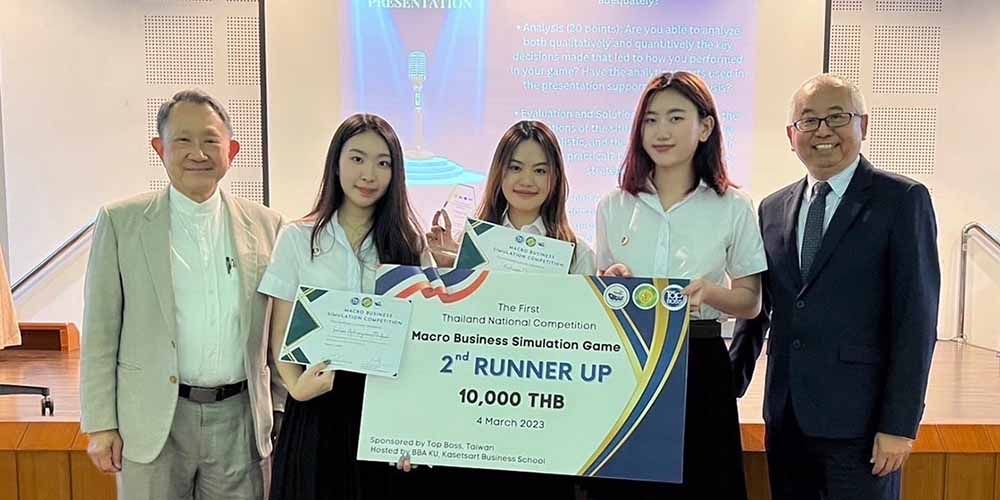 Three freshmen from Mahidol University International College (MUIC) were awarded the 2nd Runner-up prize in the first Thailand National Macro Business Simulation (MBS) competition hosted by BBA, School of Business, Kasetsart University.