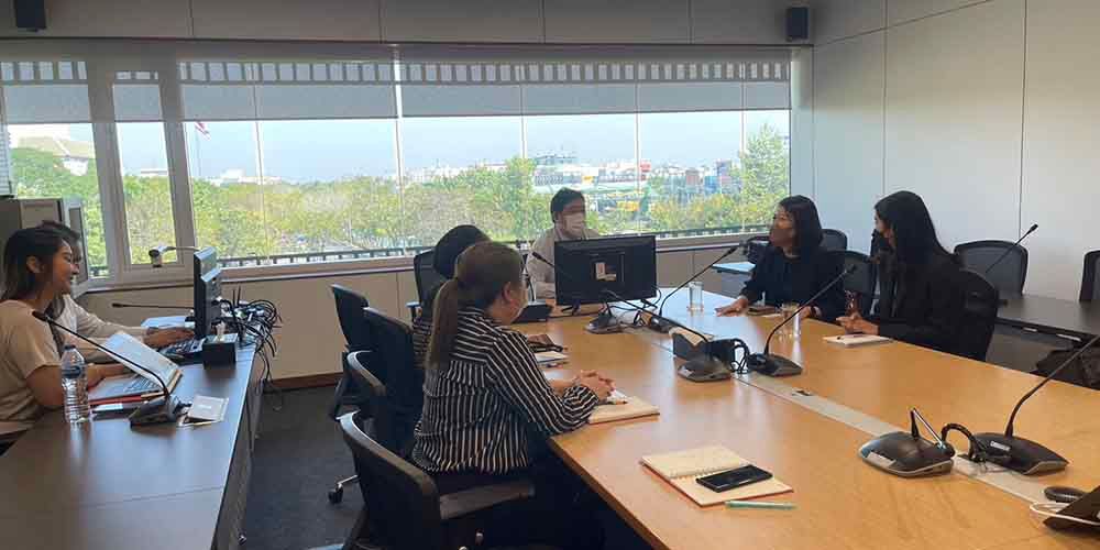 Asst. Prof. Dr. Chayanant Hongfah, Associate Dean for Student Affairs, along with staff members from the Alumni Affairs and Career Development Group of MUIC’s Office of Student Affairs, and student officers from MUIC Case Club, had a meeting with representatives from Deloitte Consulting SEA at Meeting Room A302, Aditayathorn Building, on November 9, 2022.