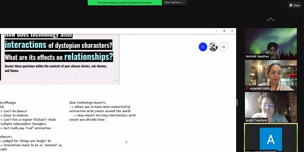 Participants were divided into small groups, were given questions under the theme “Dystopian Societies” and sub-theme “Societal Degradation and Technology which guided their discussions and afterwards had to present their answers.