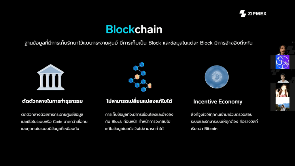 Resource speakers from Zipmex Thailand discussed topics including blockchain and cryptocurrency, trading strategy, and guidance on occupations that are related to crypto or