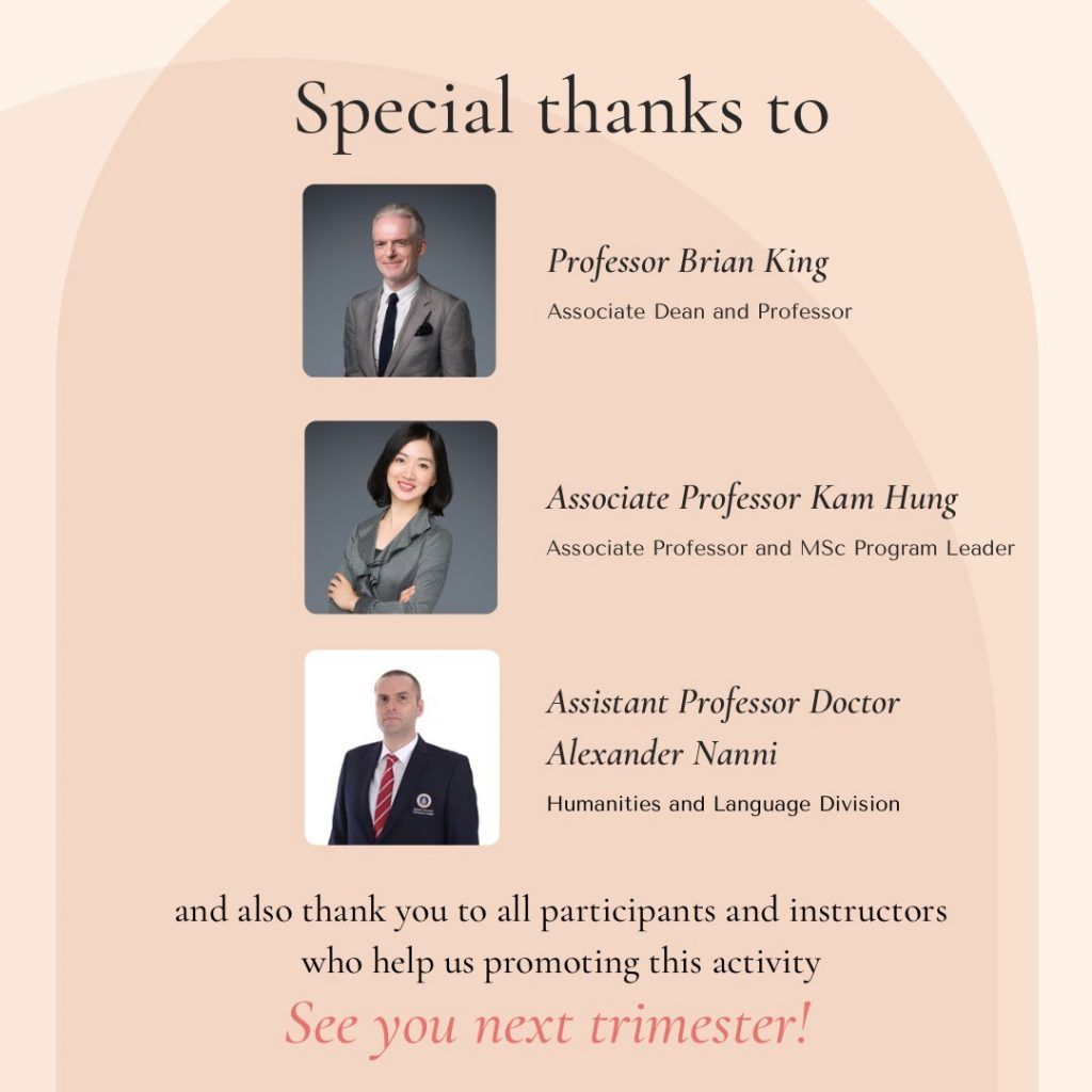 The online meeting, attended by 48 students, featured faculty members from HKPU and MUIC. Among the topics discussed was the availability of scholarship grants in HKPU’s masteral program where MUIC students might be interested to enroll in.