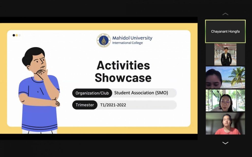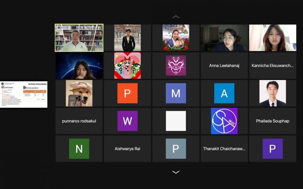 To plan the upcoming activities in this academic year (2021-2022), the Office of Student Affairs organized a day-long online event called "Activities Showcase (AY 2021-2022)" on September 9, 2021. It was attended by 75 participants from the Student Association and 25 student clubs.