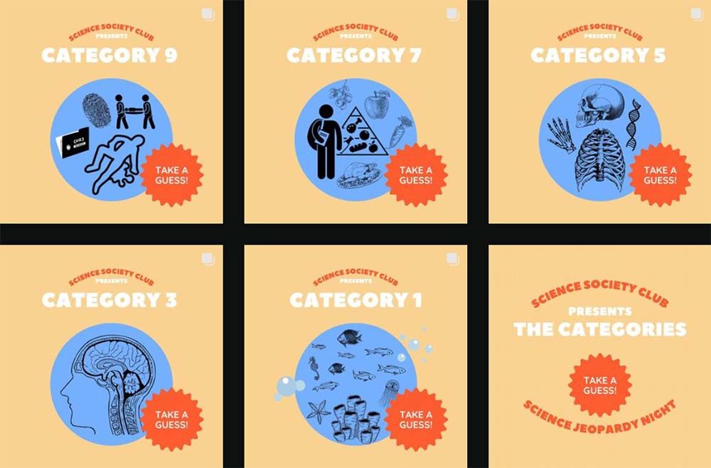 Participants formed teams of 3 to compete in a Jeopardy-like game where each of the question category is a branch of science that is not well-known or commonly talked about.