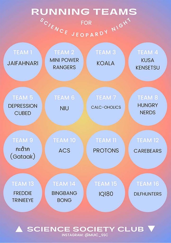 The Science Society Club of Mahidol University International College (MUIC) hosted its first activity for Trimester 1/2021-2022 dubbed “Science Jeopardy Night!” on October 8, 2021.