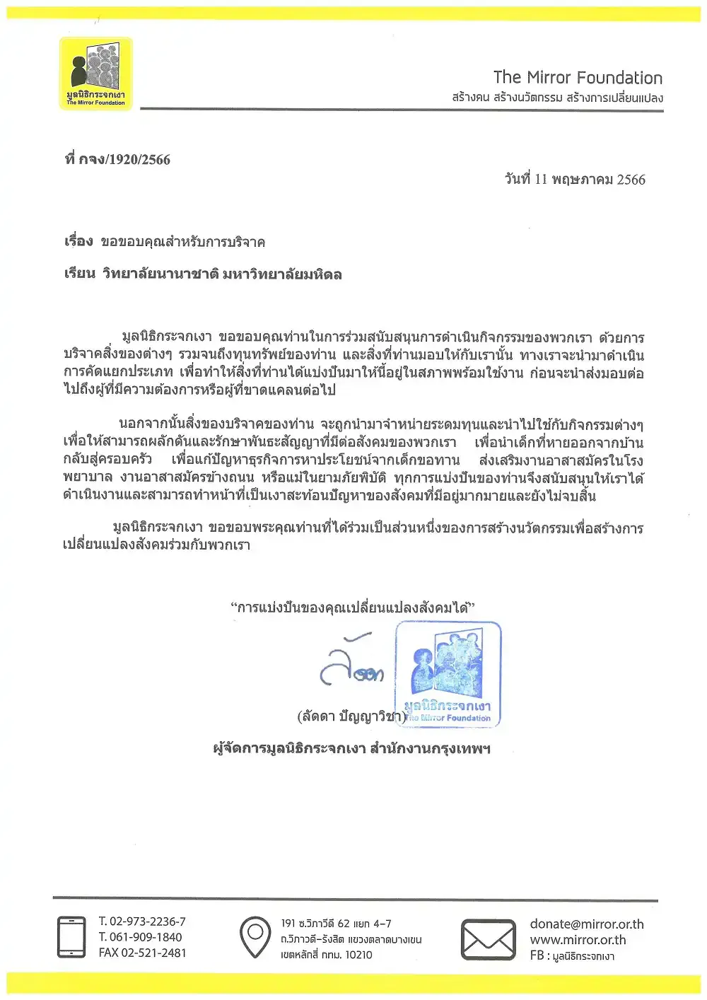 The Office of Student Affairs said it handed all donated items to the Mirror Foundation, a non-profit organization, on May 11, 2023.