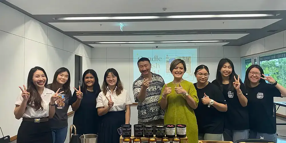 Held on May 23, 2024 at Room A235, Exhibition Hall, Aditayathorn Building, the event was a scented candle workshop wherein each of the 43 participants was provided with 100 grams of candle wax, jars, markers and other items needed for decoration along with fragrant oil with which they could use in making their unique candles.