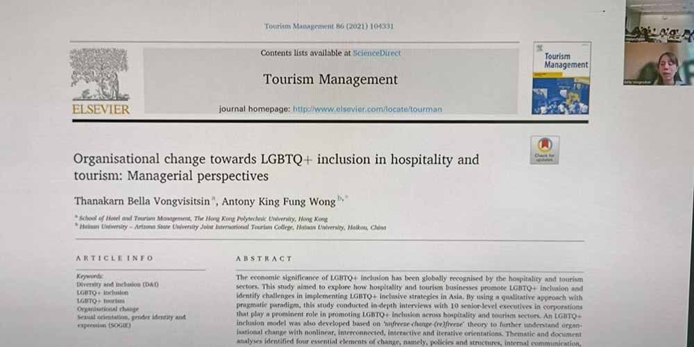 The Tourism and Hospitality Management Division (THM) hosted a talk on February 7, 2023 at Aditayathorn Building entitled "An Introduction to the LGBTQ+ Market and Designing LGBTQ+ Inclusive Servicescape." The speaker was Dr. Bella Vongvisitsin, who is a co-founder of LGBTQ+ Tourism Asia, a Business Development Manager at Artanis Technology, and a post-doctoral researcher at the School of Hotel and Tourism Management of Hong Kong Polytechnic University.