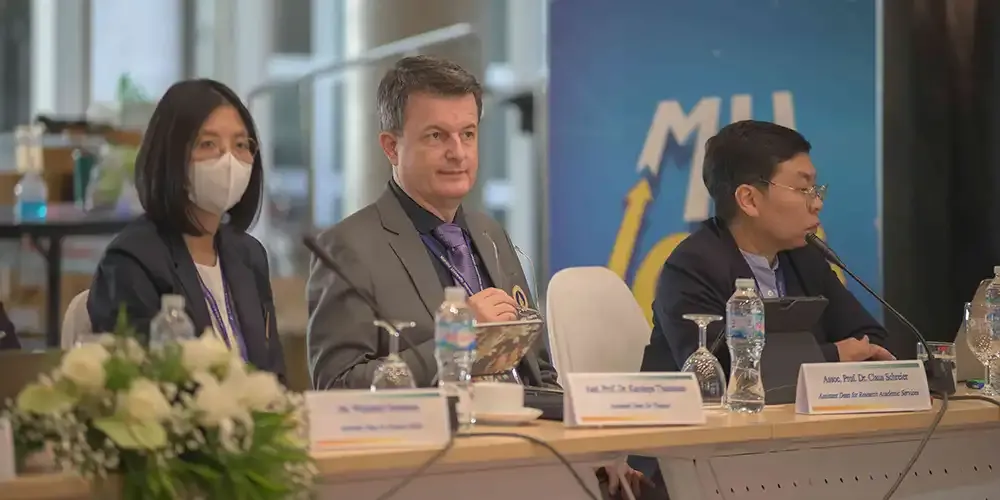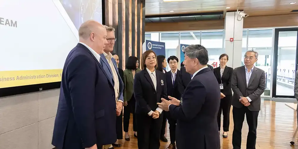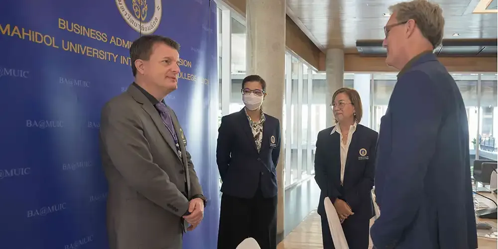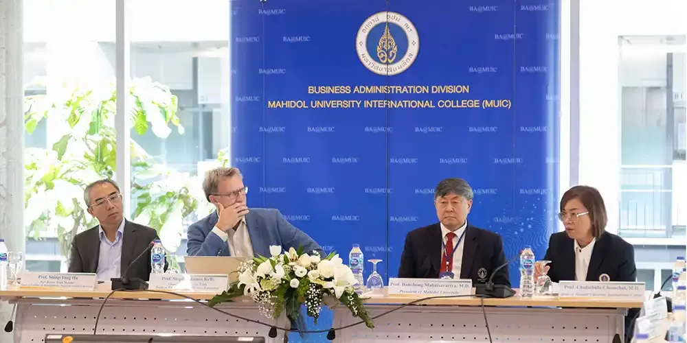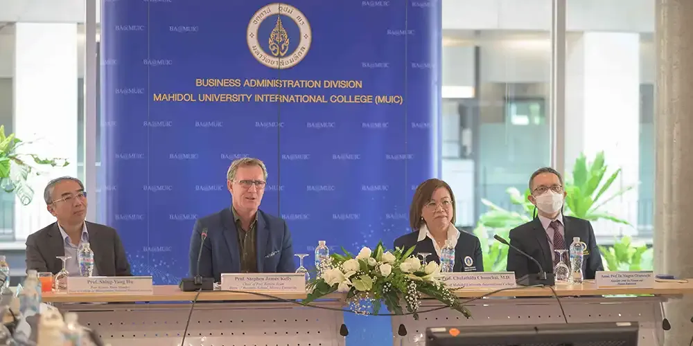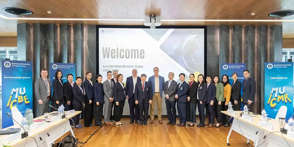 Prof. Banchong Mahaisavariya, M.D., President of Mahidol University, together with Prof. Chulathida Chomchai, M.D., Dean of Mahidol University International College (MUIC), welcomed the Peer Review Team from the Association to Advance Collegiate Schools of Business (AACSB) on March 10 - 12, 2024.