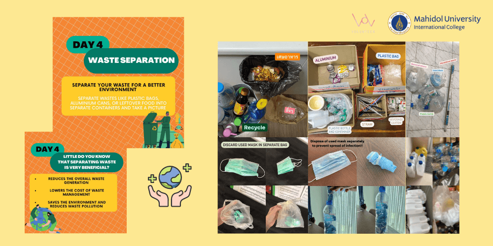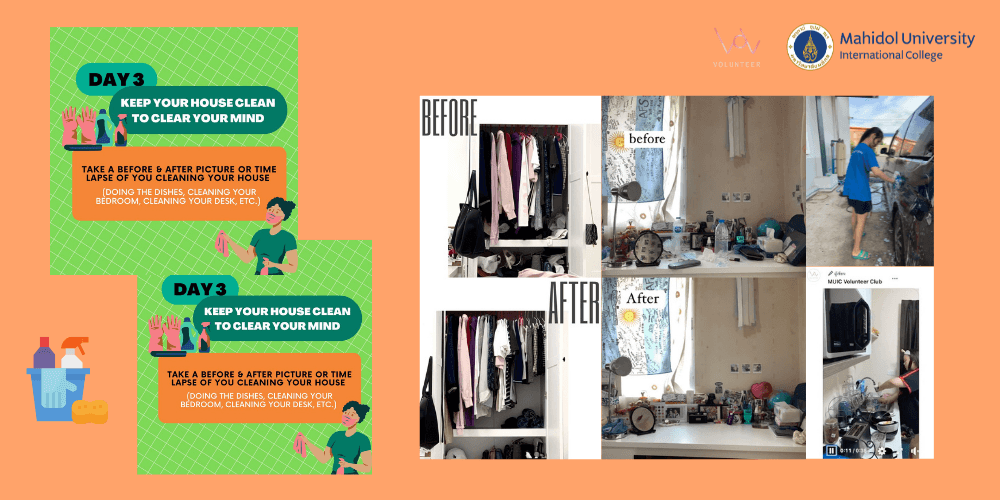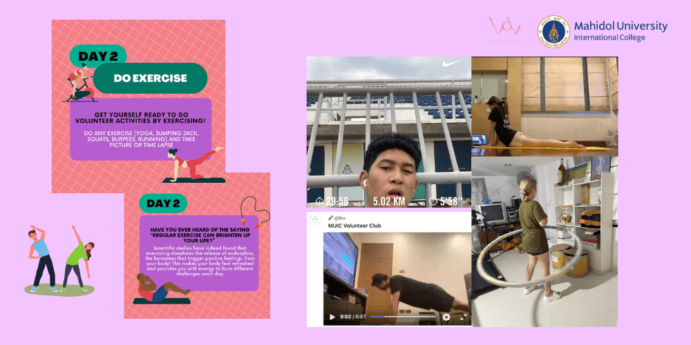 In this activity, participants were assigned to complete the challenge given each day and submit their evidence through the club’s official LINE account. The five-day challenges consisted of inviting friends to join the activity, exercising, cleaning the house, separating wastes, and pleasing family members. A total of 100 students have accomplished the activity.
