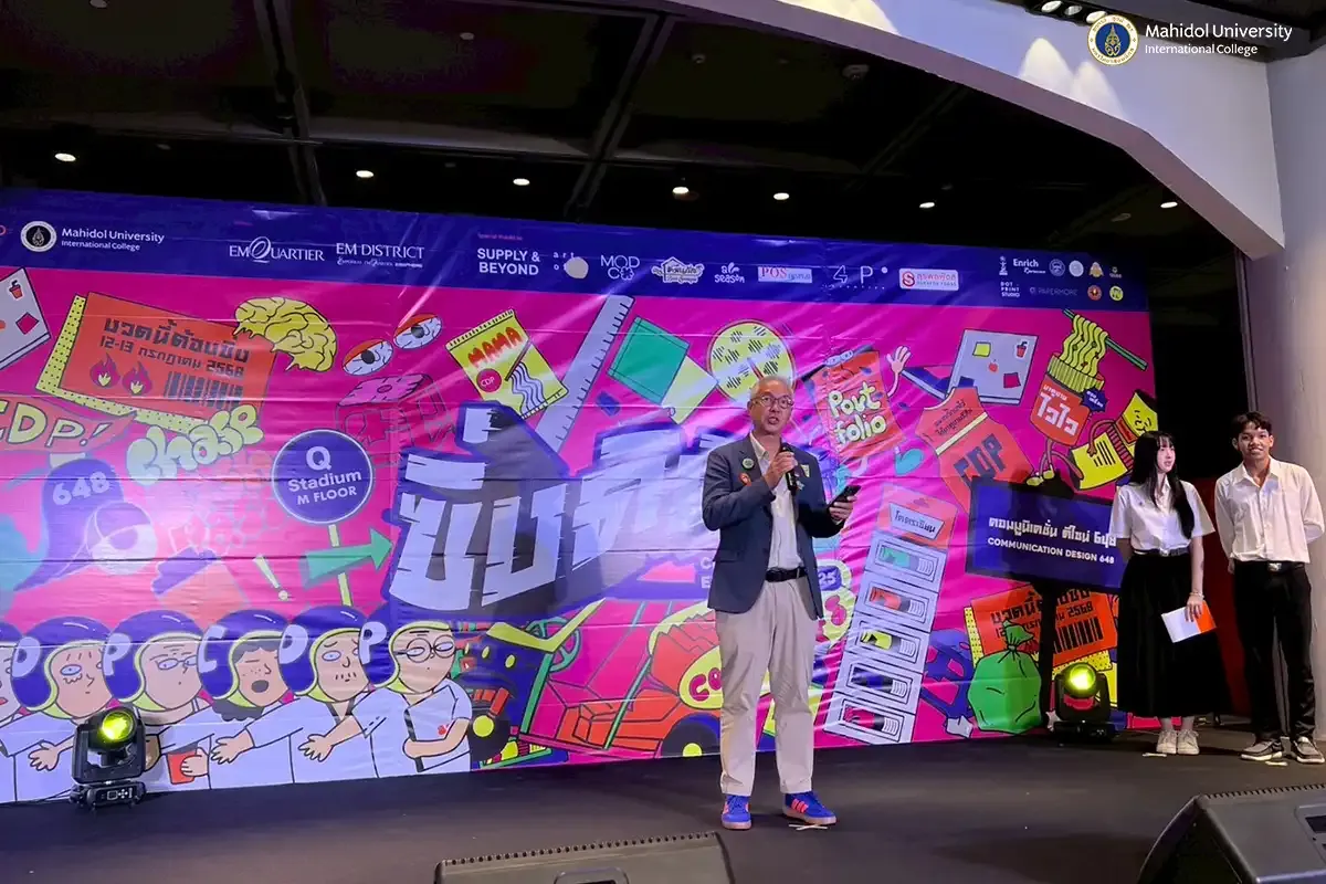 Senior students from the Communication Design Program (CDP) at Mahidol University International College (MUIC) held their thesis exhibition, “CDP Designers Rush Hour: ซิ่งดิพี่”, on July 12-13, 2025, at Q Stadium, M Floor, The EmQuartier, Bangkok.