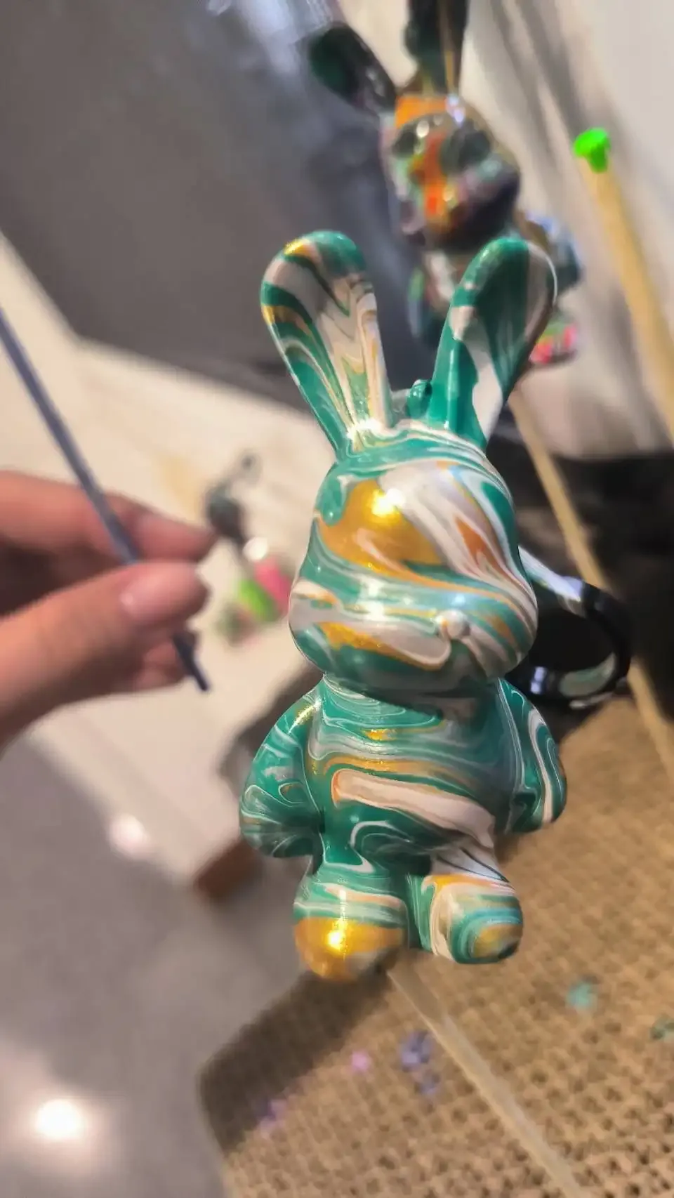 Participants celebrated Valentine’s Day by painting their own bear or bunny keychain. A special type of paint was used where the colors would separate and create special patterns.