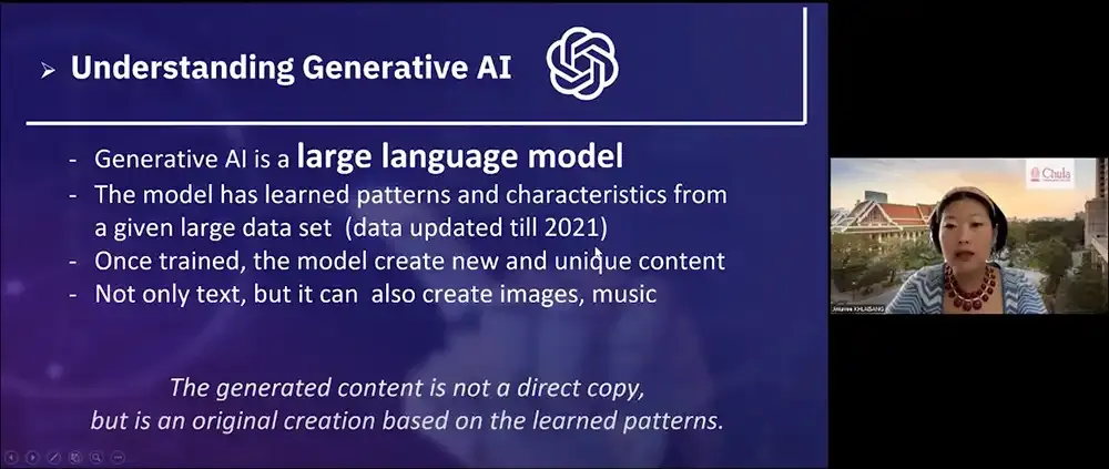 The Strategy and Academic Development Section of the OAA and EdTech conducted an online session on Generative AI in Education. Generative AI's benefits and drawbacks to higher education require careful examining to ensure that students, instructors, and institutions benefit from this technology responsibly and ethically. GPT can react to questions, generate text that resembles human speech, and do other NLP operations with the free GPT-3.5 architecture. It acts as a massive language model using information and patterns from a large dataset.