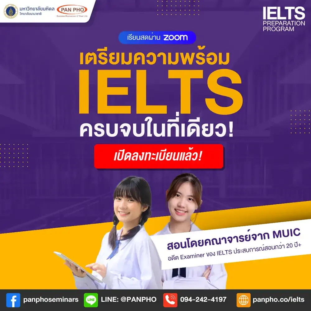 Hurry! Seats are limited. Interested individuals can apply and pay for the course today through the website: www.panpho.co/ielts or via LINE: @PANPHO (24 hours) or 094-242-4197.