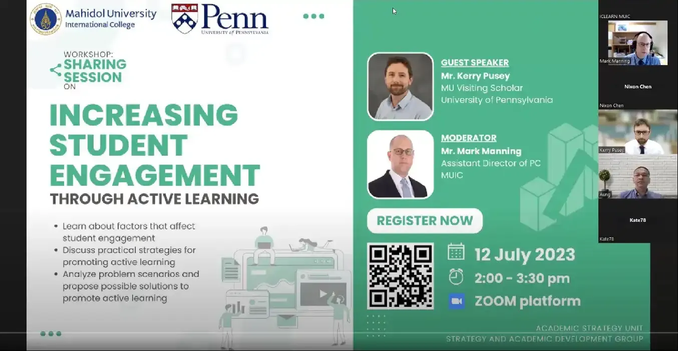 The OAA Strategy and Academic Development Section held an online session on ‘Increasing Student Engagement Through Active Learning’ to assess its effects on student engagement and learning. Active learning, which includes cooperative learning, experiential learning, problem-based learning, project-based learning, and others, shifts the focus from the traditional classroom to creating an environment and strategies that encourage students to deeply engage with the learning process and actively construct their own knowledge. Active learning puts students in charge of their learning, improving comprehension, retention, critical thinking, problem-solving, teamwork, and communication.