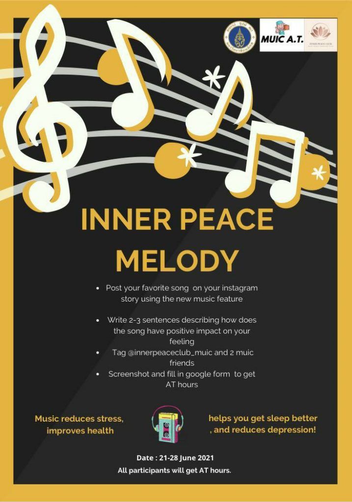 The MUIC Inner Peace Club held its second online activity called “Inner Peace Melody” on June 21-28, 2021 with a total of 210 participants.