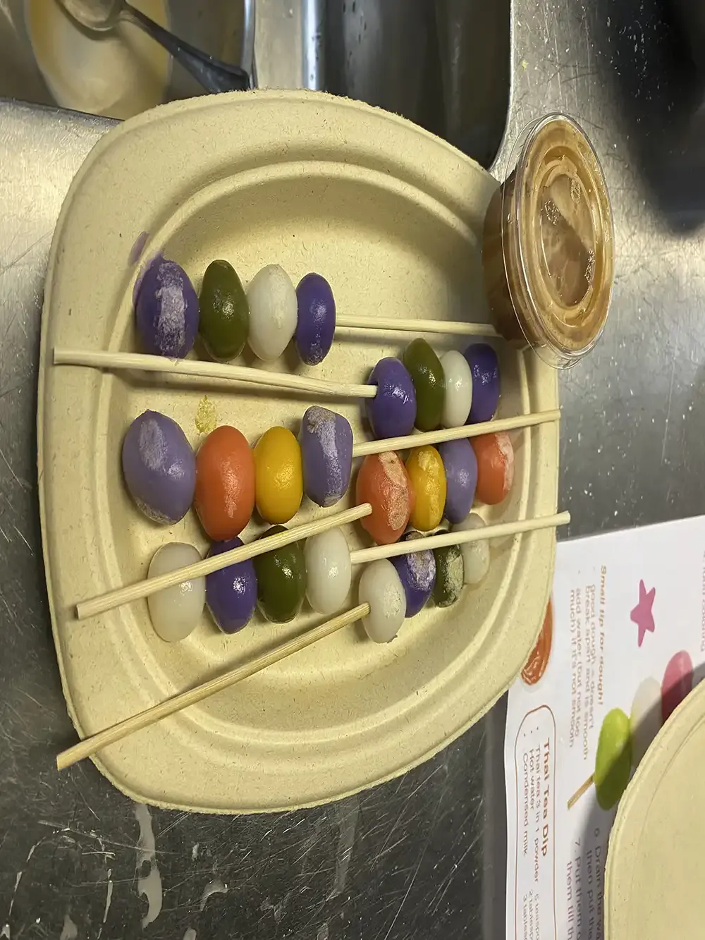 On the first day of the event, participants made mitarashi dango, a traditional Japanese dessert but with a Thai twist with its Thai tea sauce that they themselves have made. They were allowed to express their creativity by choosing different colors and shapes for the dangos. On the second day of the event, the menu was a Thai tea sago drink topped with ice cream. Although making sago was difficult, many participants emerged from the workshop with mouth-watering drinks!