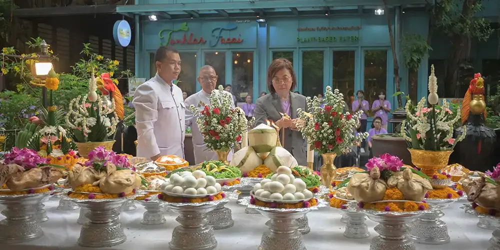 Early in the morning of March 26, the Dean, executives, the former MUIC dean, faculty members, and staff, participated in the Offering of Blessing Ritual at the Chao Por Khuntoong Shrine followed by a Religious Ceremony officiated by nine Buddhist monks at the Ground Floor, MUIC Building I.