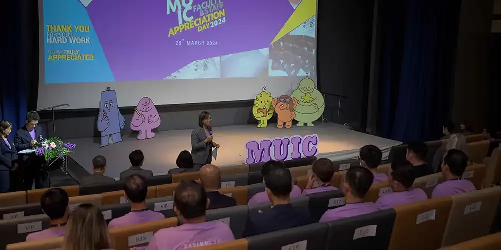 In the afternoon, MUIC’s newest brand ambassadors—a group of cartoon characters that will appeal to the college’s target audience—were launched in “Meet the MUIC Friends,” held at A556 Spectrum Screening Room, Aditayathorn Building. After this event, faculty and staff members selected for their outstanding performance were honored at the MUIC Faculty & Staff Appreciation Day 2024 in the same venue.
