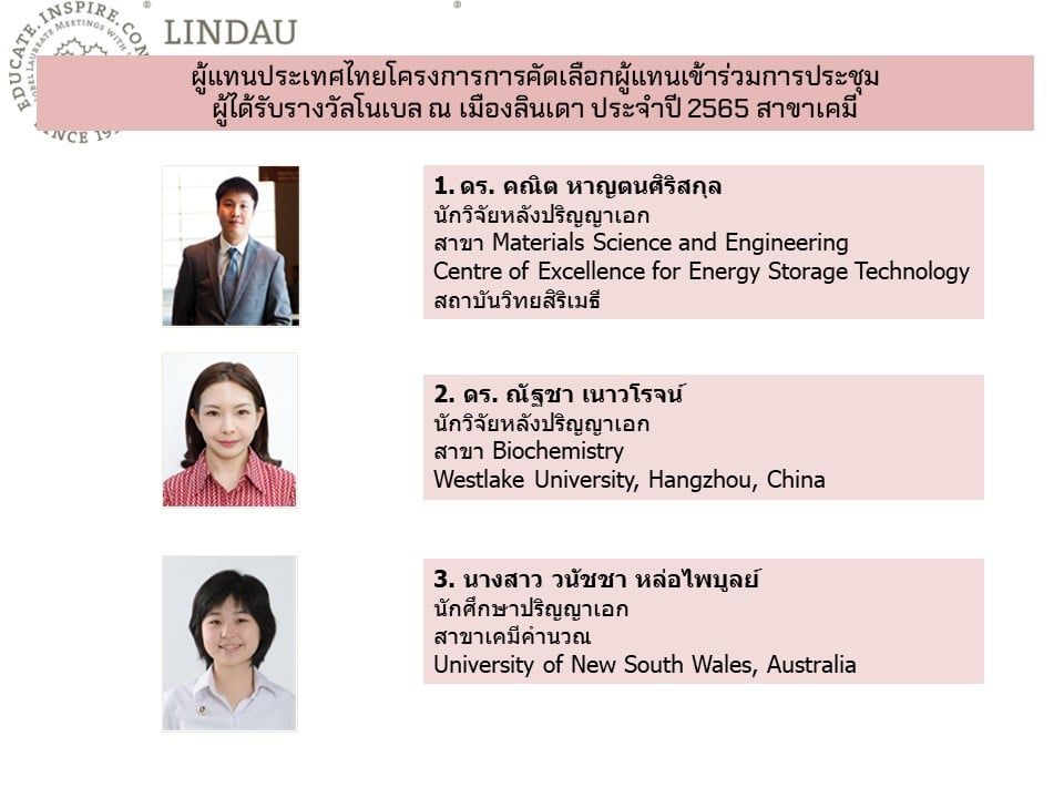 Congratulations to Ms. Wanutcha Lorpaiboon, a Mahidol University International College (MUIC) alumna (Chemistry, Class of 2020), who was included in the list of potential candidates last November 2021 to the Lindau Nobel Laureate Meetings (Chemistry). The selection of Thai candidates was held under the auspices of the Thai government’s National Science and Technology Development Agency.