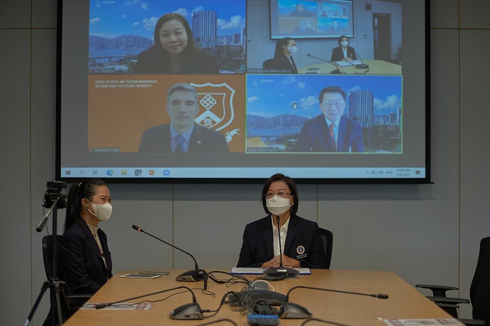 The MOU provides for a dual degree (2+2) agreement between the two institutions. Signing on behalf of MUIC was Prof. Chulathida Chomchai, M.D., Dean of MUIC. On the other hand, Prof. Kaye Chon, Dean of SHTM, represented Hong Kong Polytechnic University.