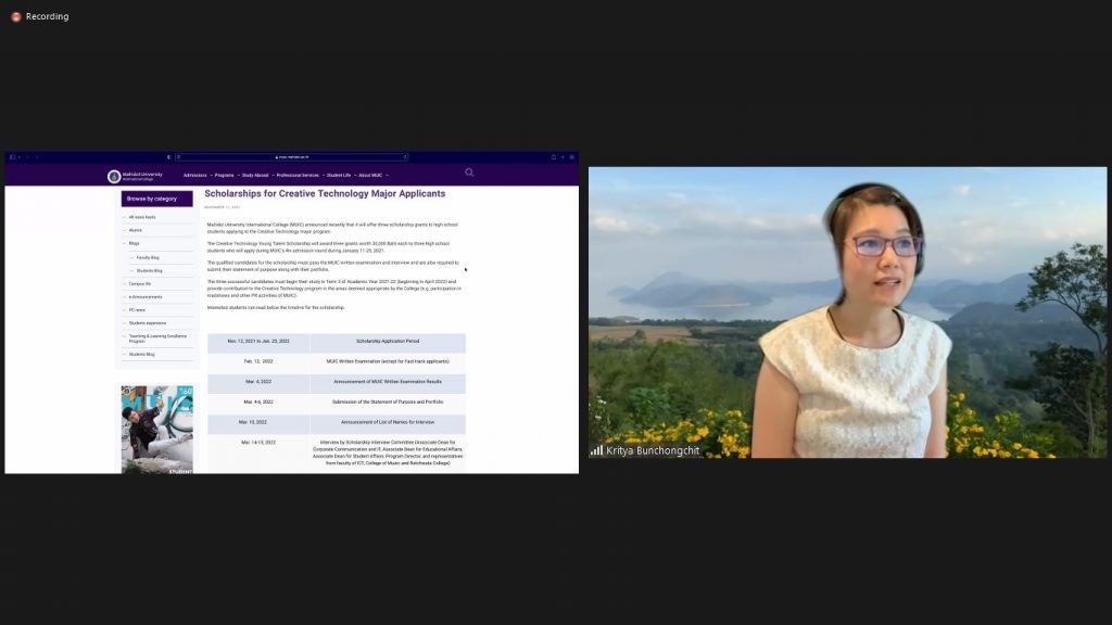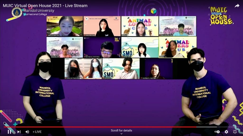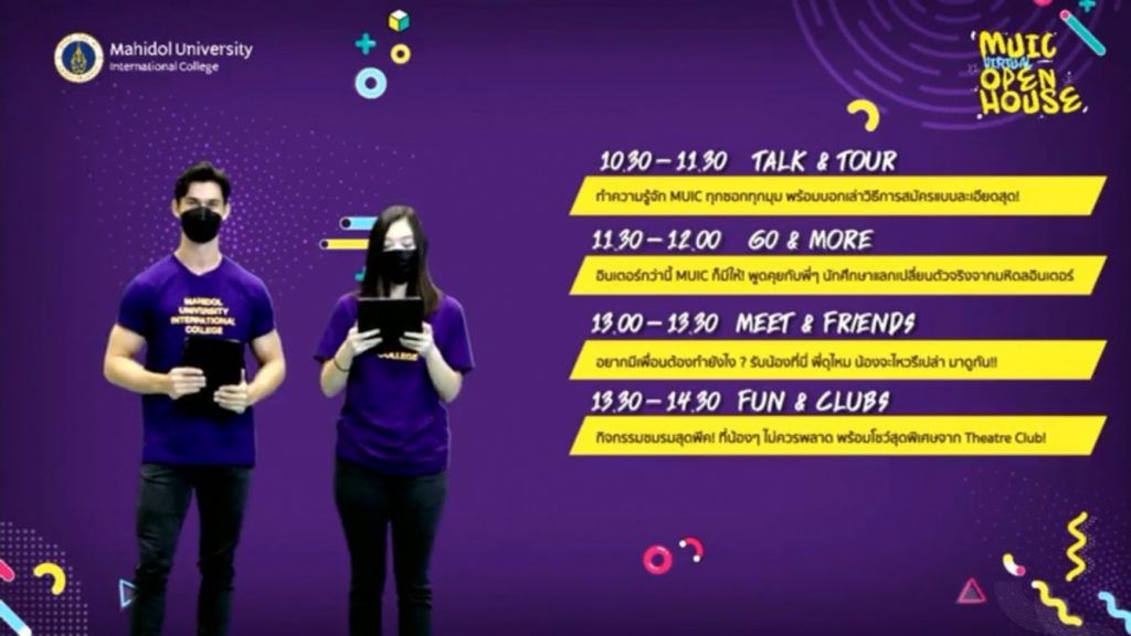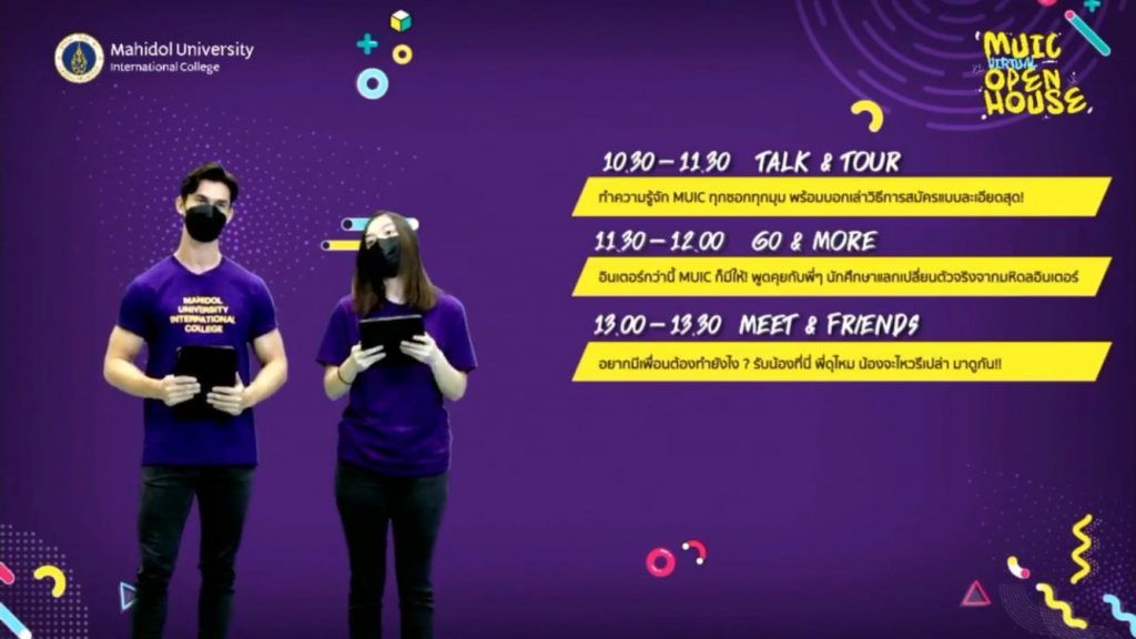 Mahidol University International College (MUIC) held the MUIC Virtual Open House 2021 live online via Zoom, Facebook, and YouTube during November 8-13, 2021.