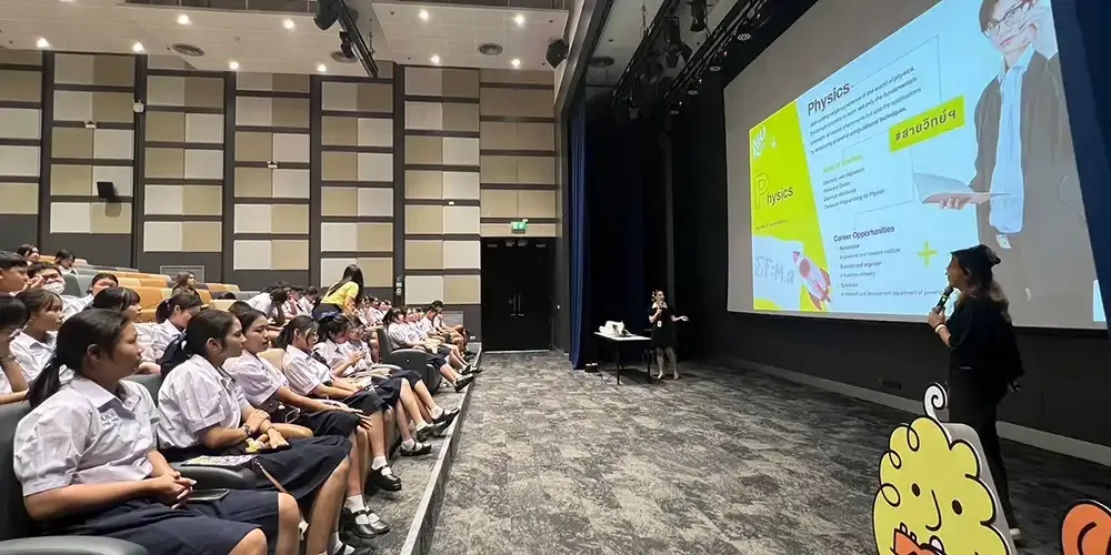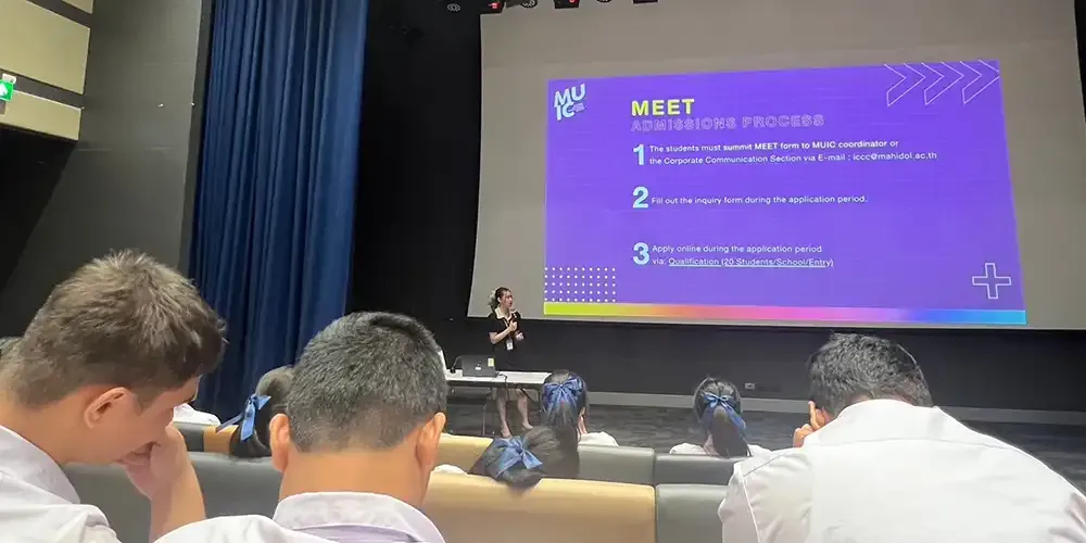 MUIC staff members and representatives from the academic divisions met the students at the Screening Room, Room A556 in Aditayathorn Building, where the high school students learned much about MUIC’s international programs and admissions procedure which will be helpful for their plans to apply for university. There was also a Q & A session at the end.