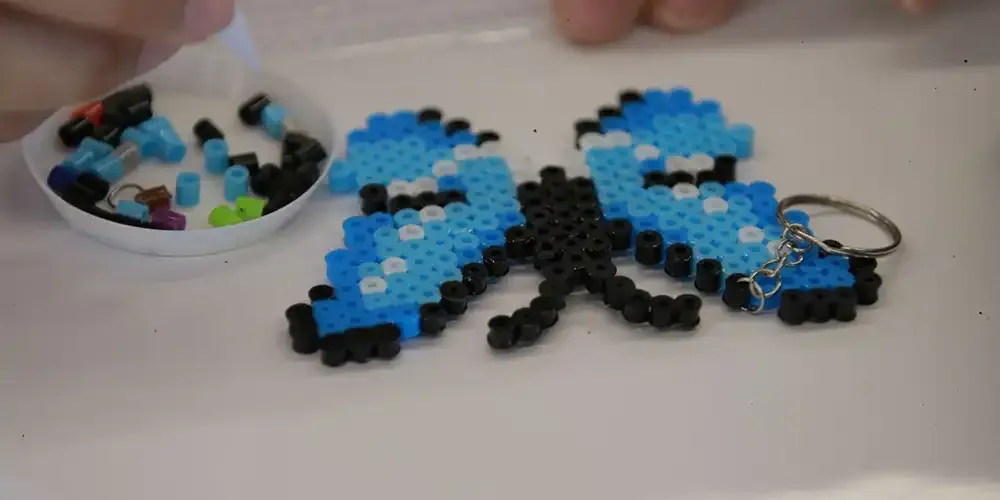 The club provided the participants with various colors of beads, together with a plastic plate with a different shape itself so that the they can customize their own key rings, with a model serving as an example to the students.