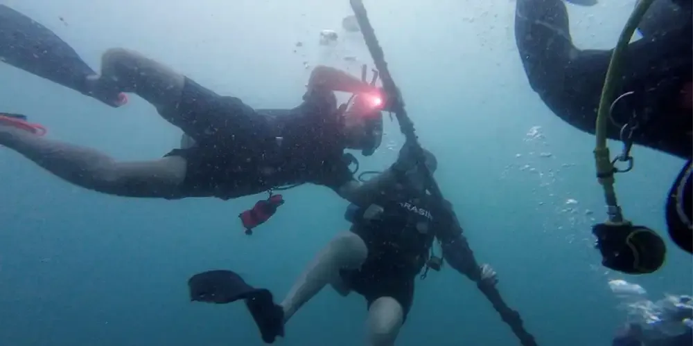 For the Open Water license, participants were required to perform various skills, including controlling descent with their dive buddy, mask removal and replacement, regulator clearing, stationary gas sharing, and more. For the Advanced license, they must complete navigation skills, perfect buoyancy, Hardeep Dive (wreck diving), DSMB, torch and hand signs, among others.