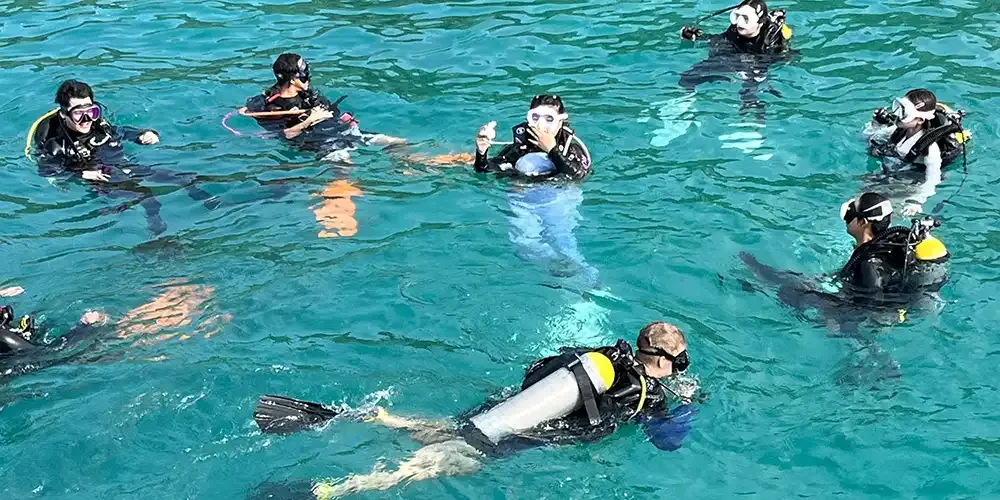 During the “Ocean Session,” the 27 participating students who had previously joined the” Scuba Pool Session” tested their newly-learned essential scuba diving skills in the “Ocean Session” to qualify for their international certificate.
