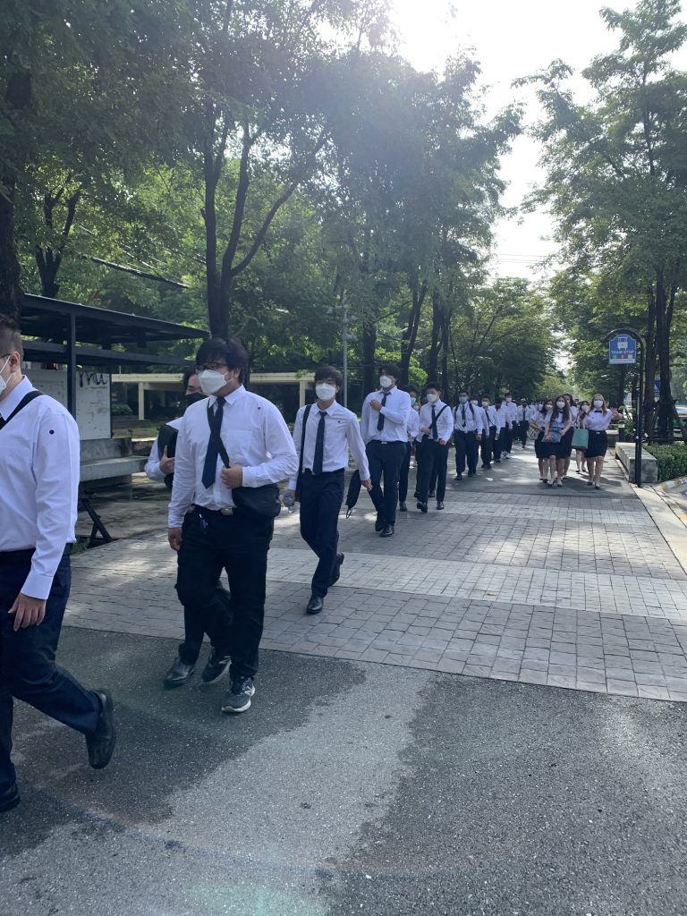 Prof. Banchong Mahaisavariya, M.D., President of Mahidol University, gave the welcome speech. Ajarn Wimonsiri Hemtanon, Assistant Dean for Student Affairs, represented the MUIC Executives in this event.