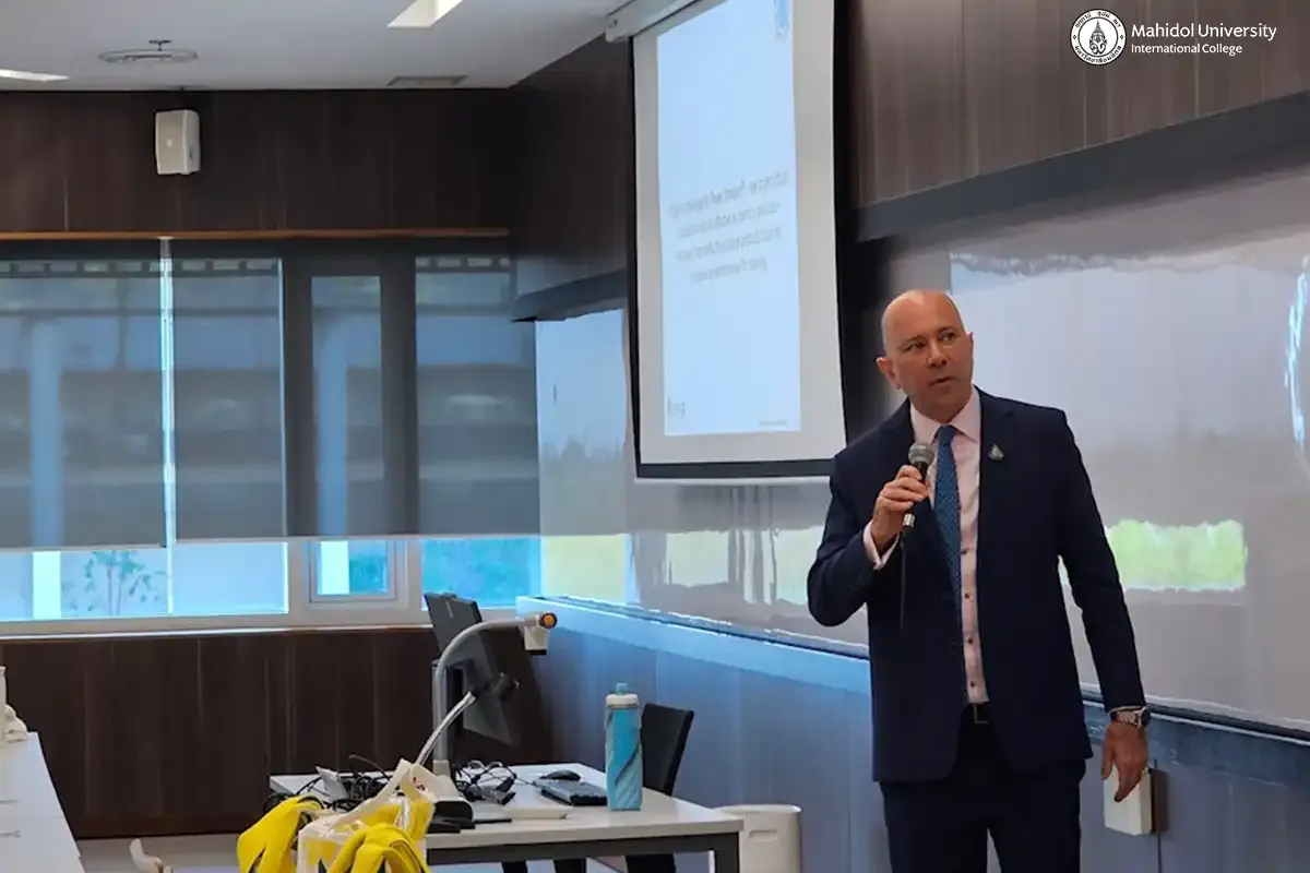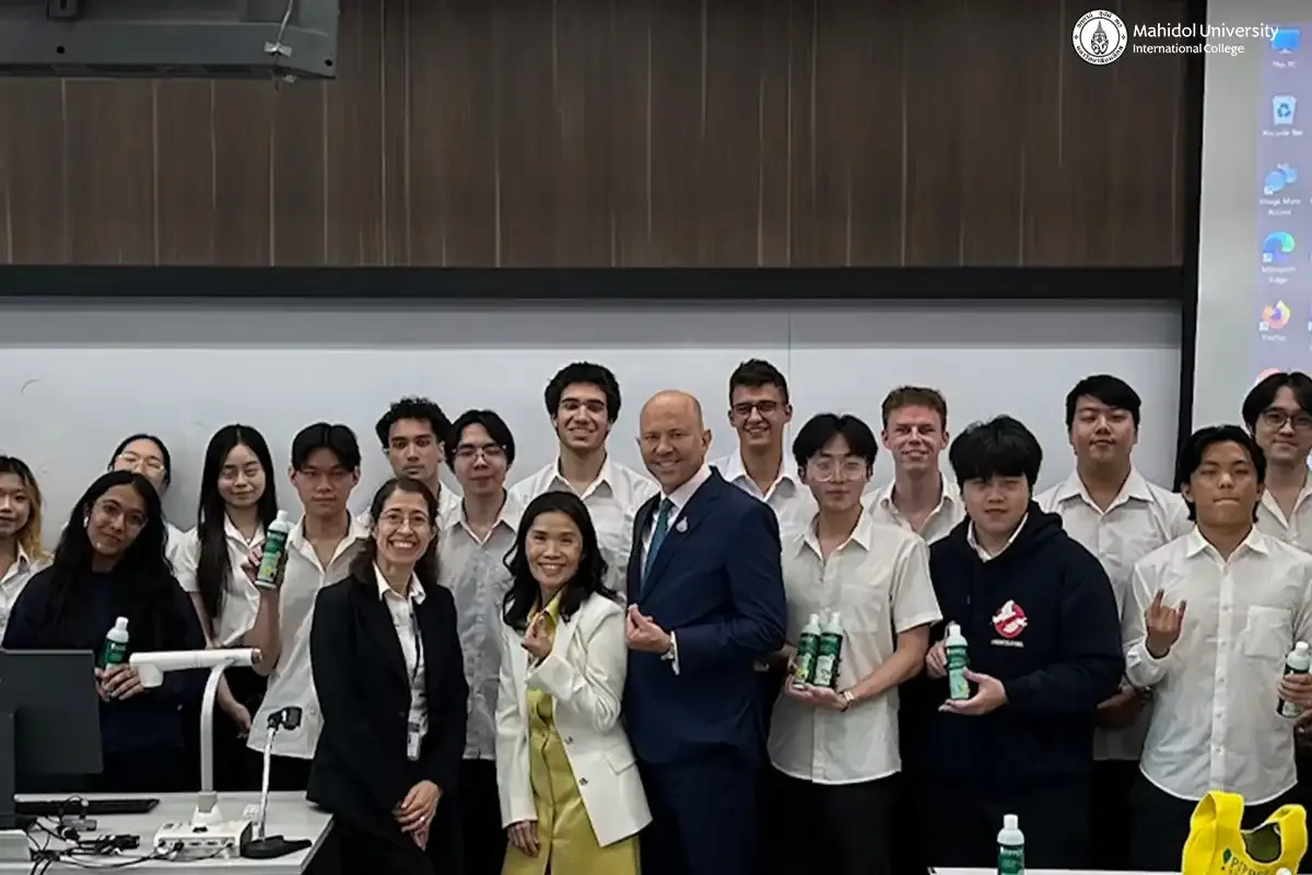 On February 3, 2026, the Bachelor in Business Administration (BBA) program of Mahidol University International College (MUIC) had the pleasure to host a special lecture on the topic of “Challenges and Opportunities of Sustainability for Business Competitiveness: Entrepreneurial Perspective.” The event took place at Aditayathorn Building as the BBA continued its series of special sessions on the Business Sustainability theme.