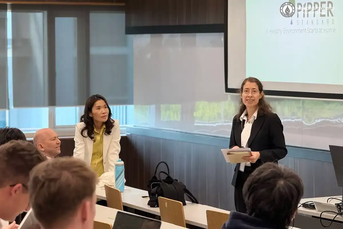 Mrs. Sirilak and Mr. Peter opened their session by introducing their company and the award-winning products marketed under the brand “Pipper Standard.” They then shared key milestones of their entrepreneurial journey, from the company’s founding to its emergence as a leading clean-technology company in Asia, highlighting how sustainability has been embedded at the core of their business strategy from the outset.