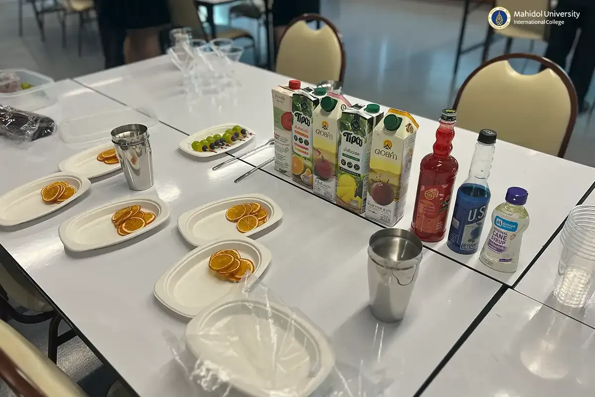 Mahidol University International College’s (MUIC) THM Club hosted an exciting and interactive event, “Shaking That Mocktail!” at Room 235, Exhibition Hall, Aditayathorn Building on October 22, 2024.
