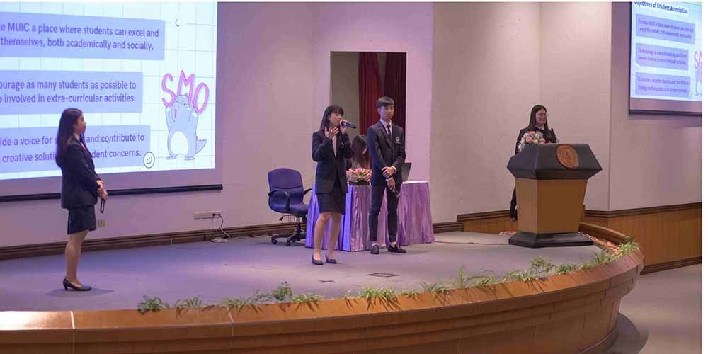 Asst. Prof. Dr. Chompunuch Pongjit, MUIC Associate Dean for Educational Affairs, along with several other MUIC lecturers and staff, also gave additional academic information and an introduction to MUIC.