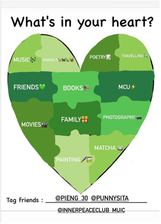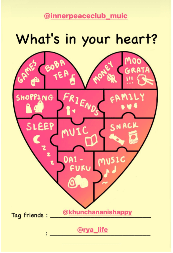 The Inner Peace Club of Mahidol University International College (MUIC) organized an online activity through Instagram called "What is in your heart?" from September 21 to October 1, 2021