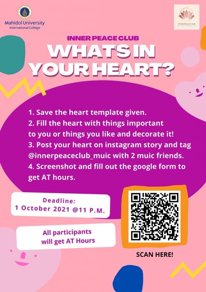 3. Post your heart on instagram story and tag @innerpeaceclub_muic with 2 muic friends.