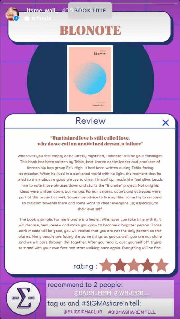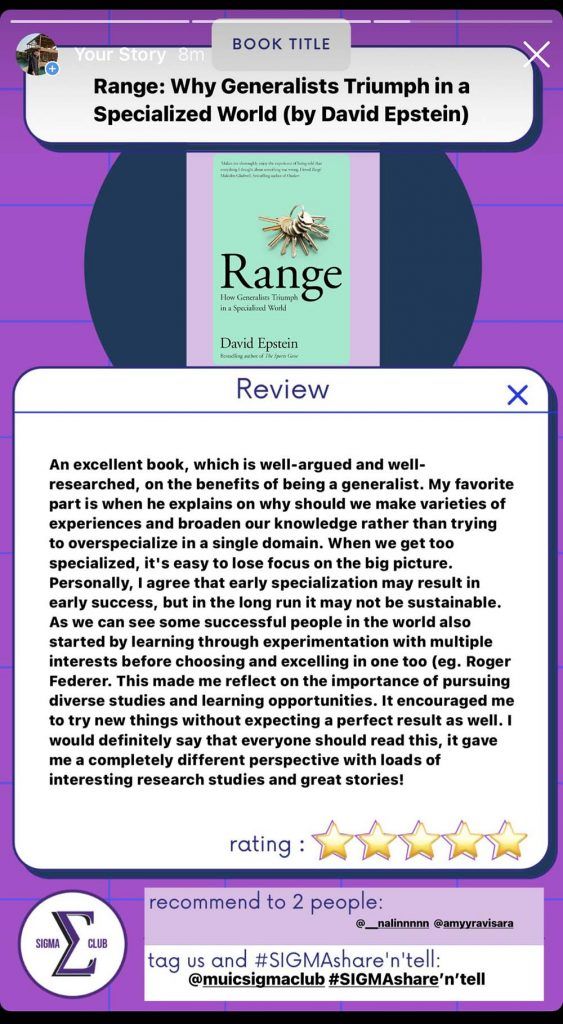 The Sigma Club of Mahidol International College (MUIC) held its first activity of Trimester 1/2021–22 entitled “Book Pitch: What’s Your Favorite Book?” which took place from September 17 to October 1, 2021.