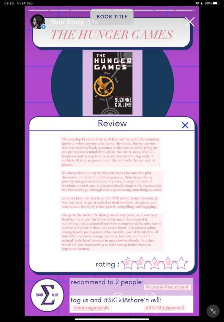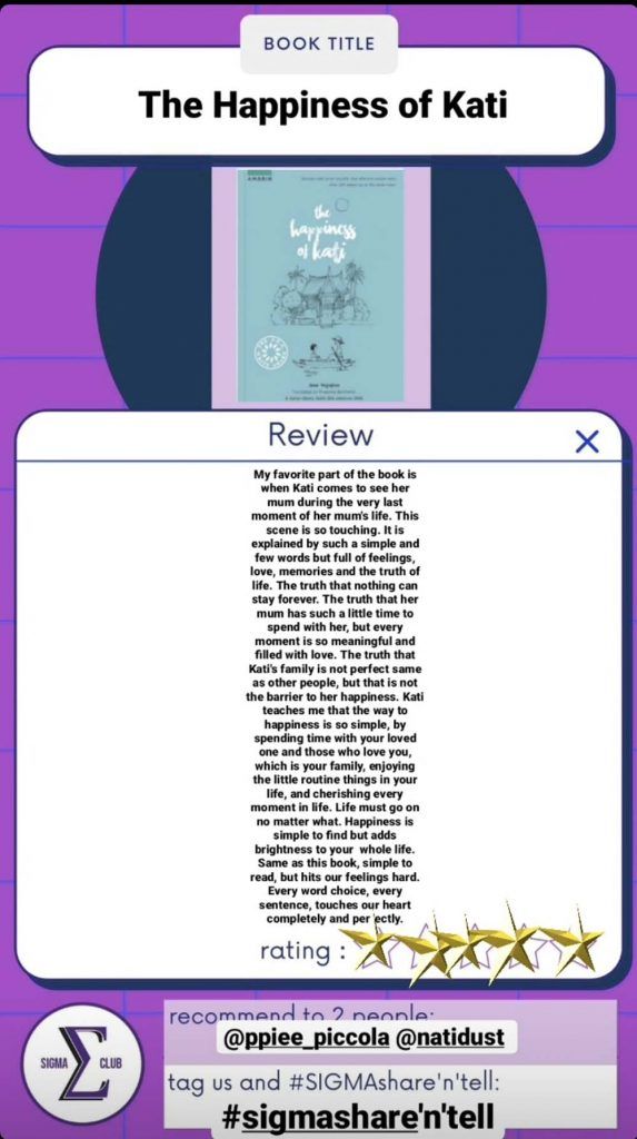This online activity asked the participants to choose a book they have read and post a review of it on their social media account. The review contained the participants’ favorite part of the book, a brief critique, and any reflection they had after reading the book. Aside from the review, the participants also rated the book and tagged two of their friends. There was a total of 75 participants, and six of them were awarded according to their reviews.