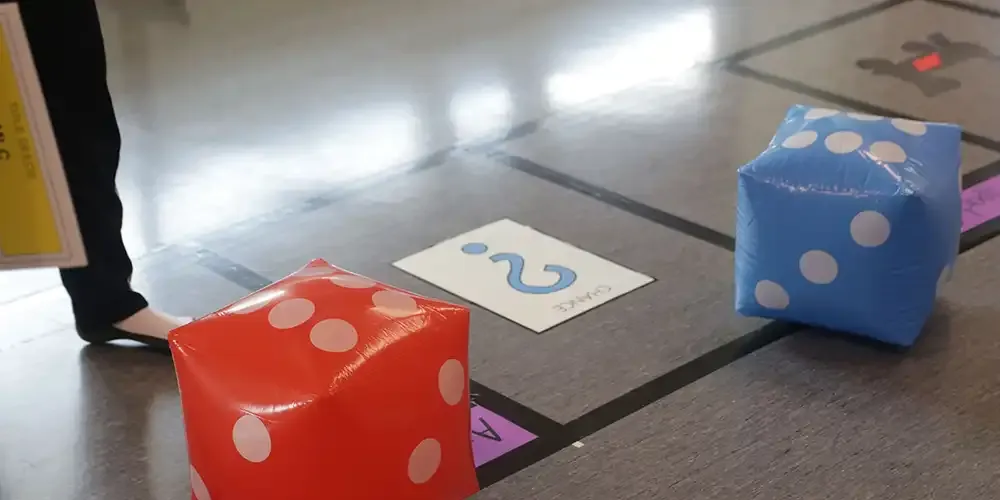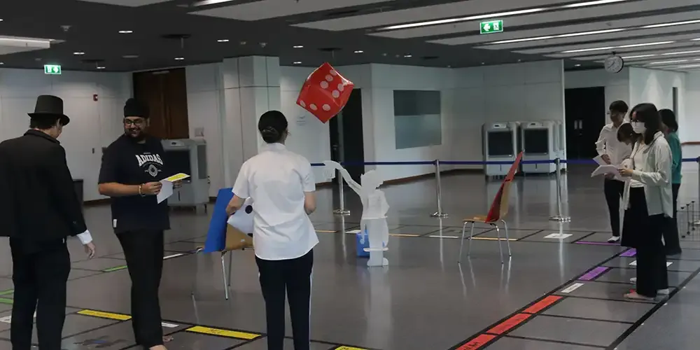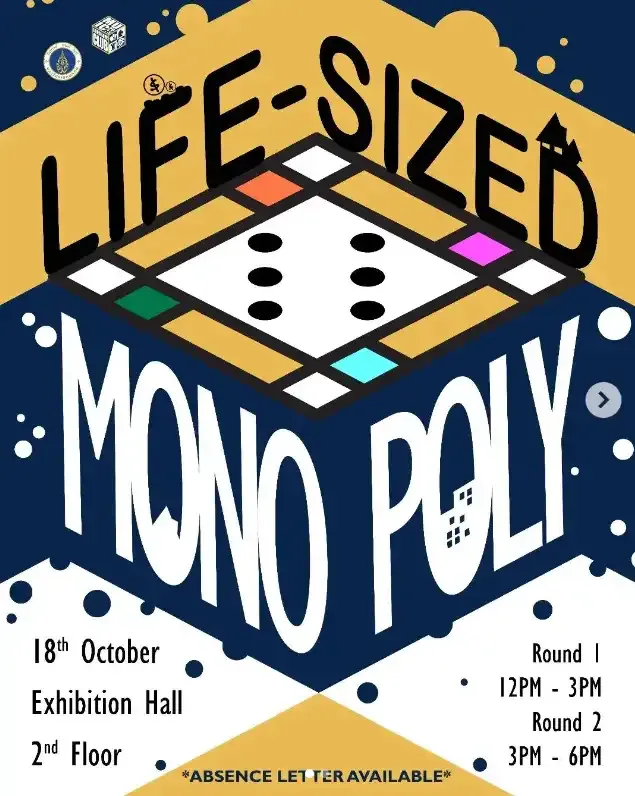 You might wonder what makes this Monopoly game life-sized? Well, the club upscaled the map to a size that a human can fit in as a token, a dice with the size of a football, cards made with A3 paper, and last but not least, chairs were used as properties. Not surprised? Never mind.