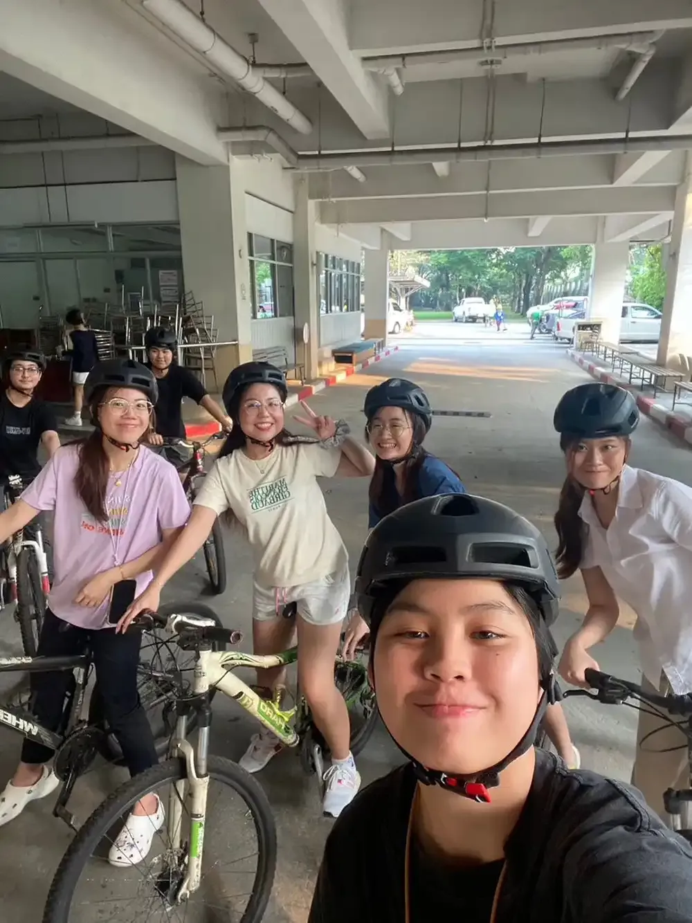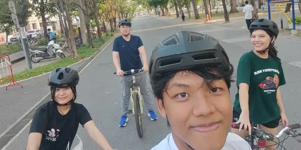 The first rides took place inside the Salaya campus, which takes 1-2 hours depending on the physical condition of the participants, then at Phuttamonthon Park where the cyclists were accompanied by a teacher.