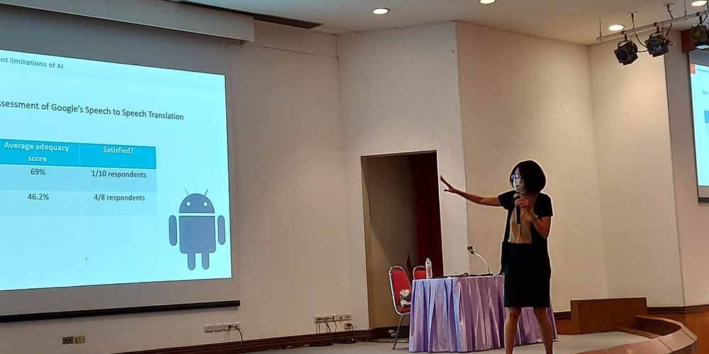 In the end, Ajarn Nunghathai and Ajarn Sergio assured the audience that AI would not be taking over the future jobs of foreign language students. Ajarn Nunghathai quoted Australian broadcast journalist and author Bill Woods: “Interpreters will not be replaced by technology. They will be replaced by interpreters who use technology.”